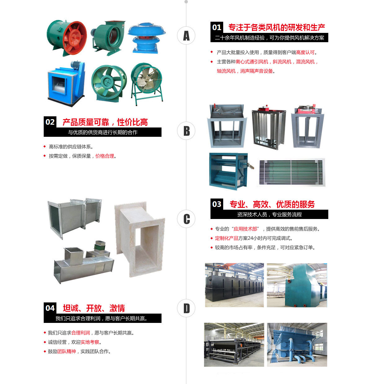 本公司專業(yè)生產(chǎn)各種離心式通引風(fēng)機(jī),斜流風(fēng)機(jī),混流風(fēng)機(jī),軸流風(fēng)機(jī),軸流風(fēng)機(jī),不銹鋼排風(fēng)機(jī),全塑封機(jī),高溫風(fēng)機(jī),消聲隔聲音設(shè)備,以及各種特殊用途的不銹鋼、鈦材、玻璃鋼、塑料及襯膠、貼瓷等不同材質(zhì)的防腐、防爆和耐高溫的高效低能耗新型風(fēng)機(jī)。同時生產(chǎn)各種水處理、消煙除塵、焚燒爐等環(huán)保設(shè)備設(shè)施。產(chǎn)品廣泛應(yīng)用于鋼鐵、冶金、醫(yī)藥、化工、紡織、煤礦、市政等各行業(yè)。